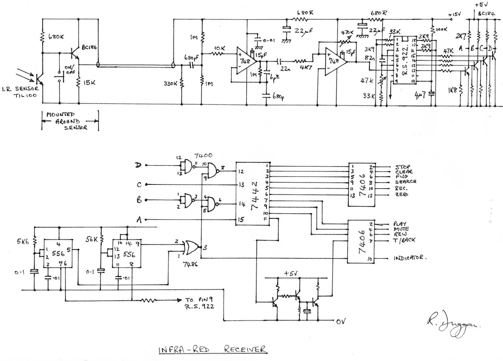 MCI Infra Red remote control![]() Another innovation was the infra-red remote to operate the multitrack machine and console talkback facility. Despite there being an MCI Autolocator at the right hand end of the console and rows of tape machine transport buttons on the left hand end of the console, Gus wanted a remote. The first one I built was with an ultrasonic emitter which gave poor performance so it was re-designed with infra-red emitters instead. At the first try-out, Gus was looking at the emitters on the remote and pressed a button. The signal reflected off his glasses and was picked up on the meter bridge which instantly sent the multitrack machine into play. It was used regularly after that. MCI Perspex guards![]() A favourite area for leaning against at the back of the control room was the five MCI tape machines, and the toggle switches on the electronics panels would get mistakenly operated or even bent and broken by an errant backside every now and then. I had some thick smoked perspex panels made which clipped over the electronics panel handles and protected the switches and meters whilst allowing sight of the meters and indicators. |